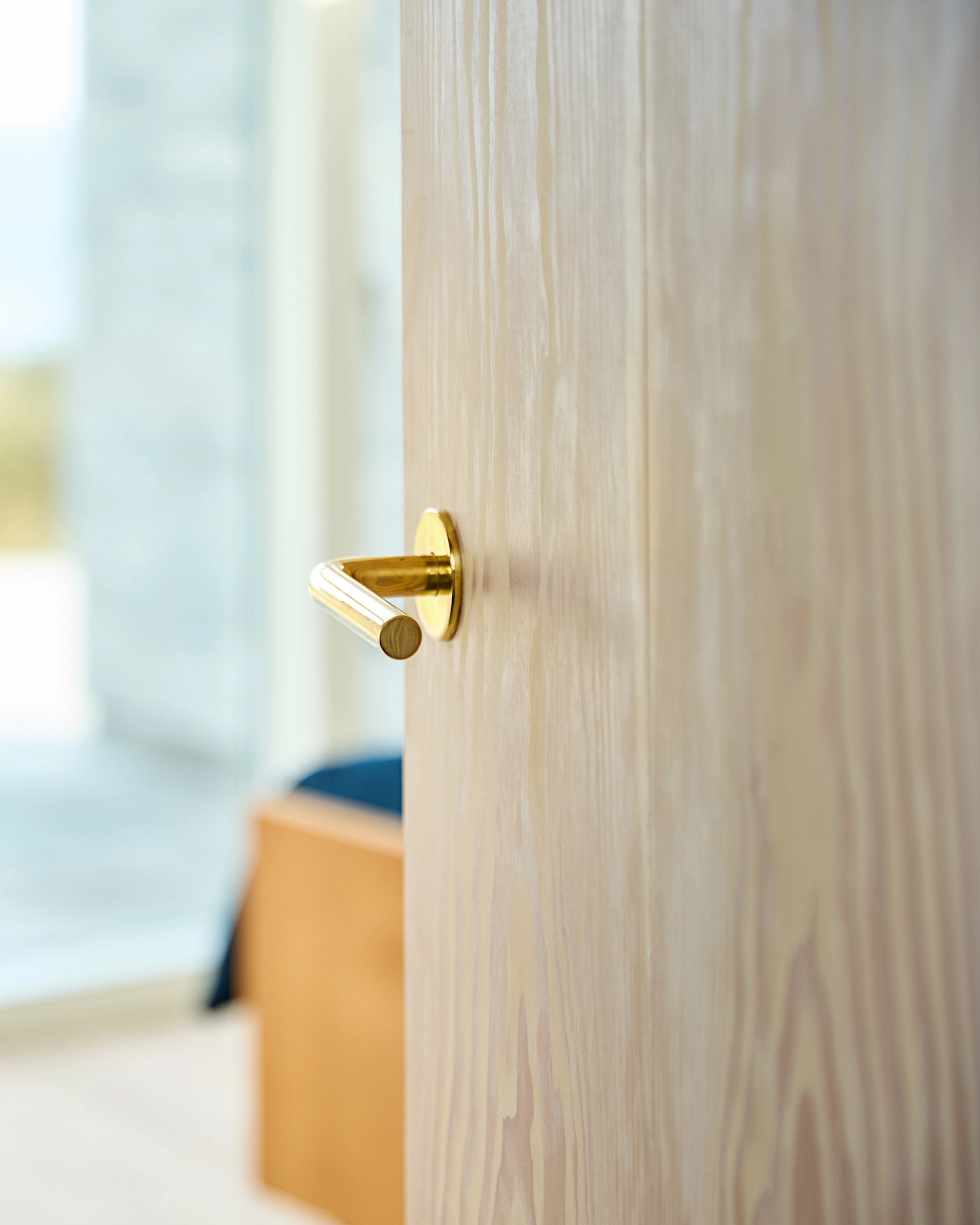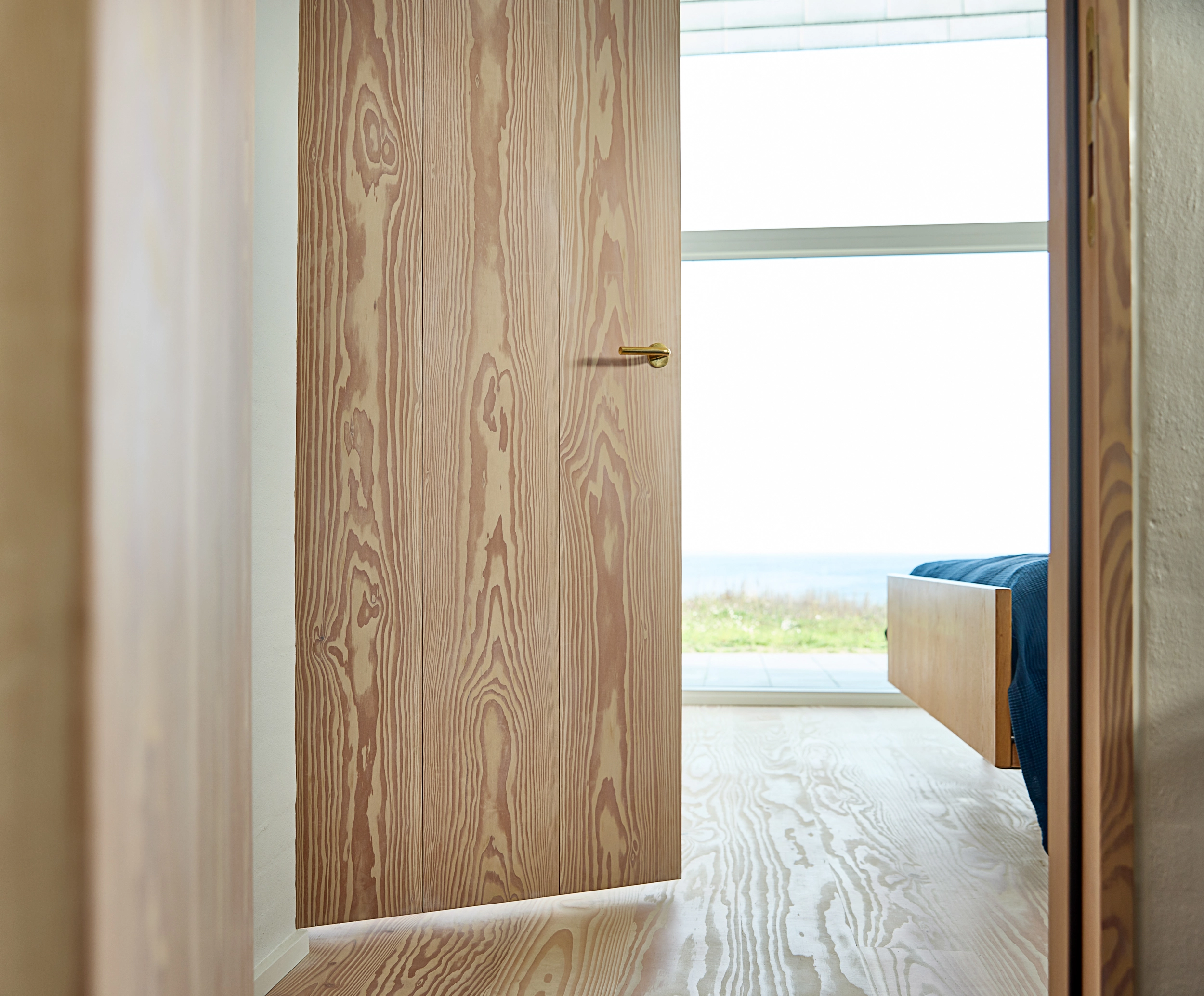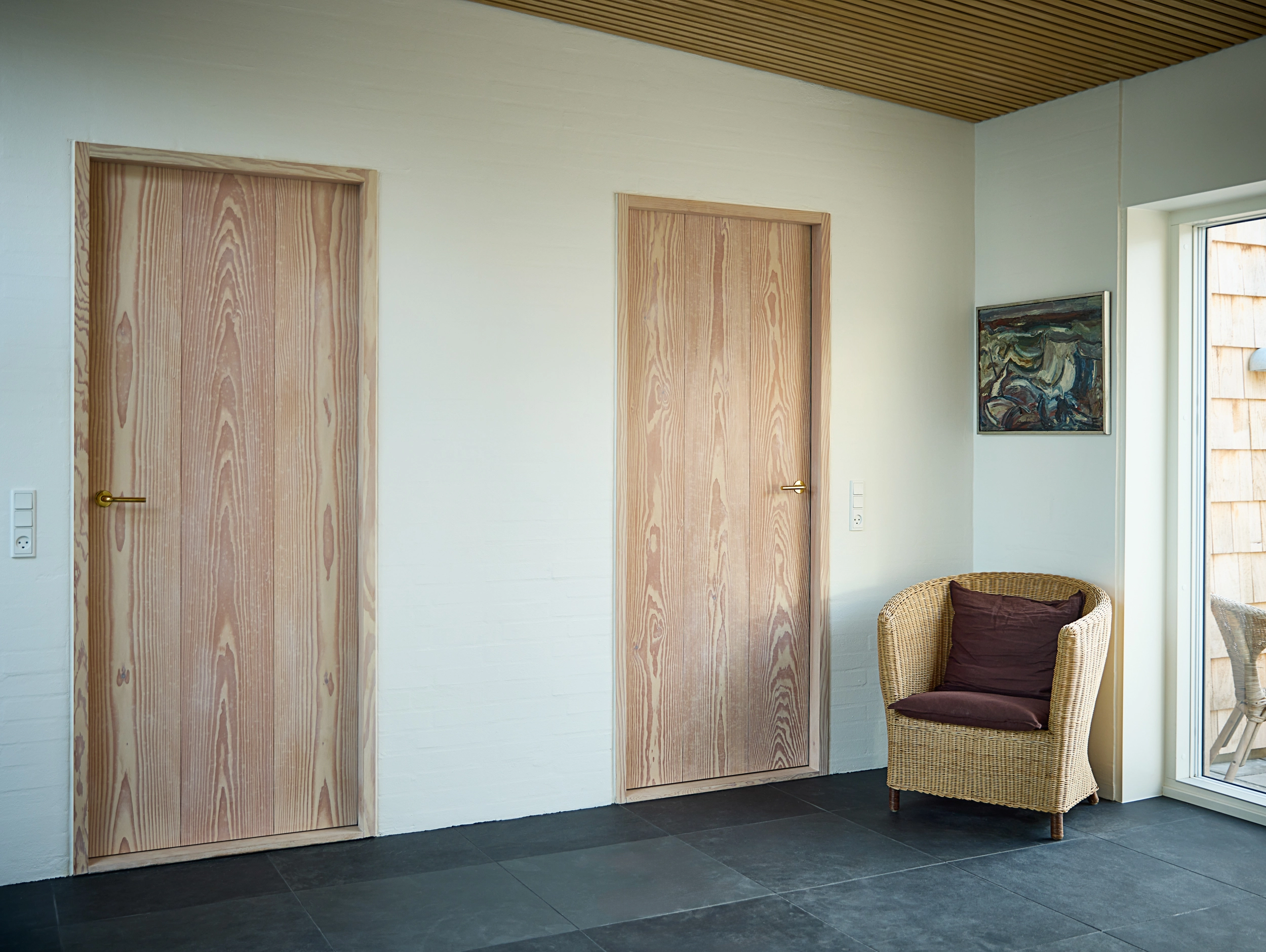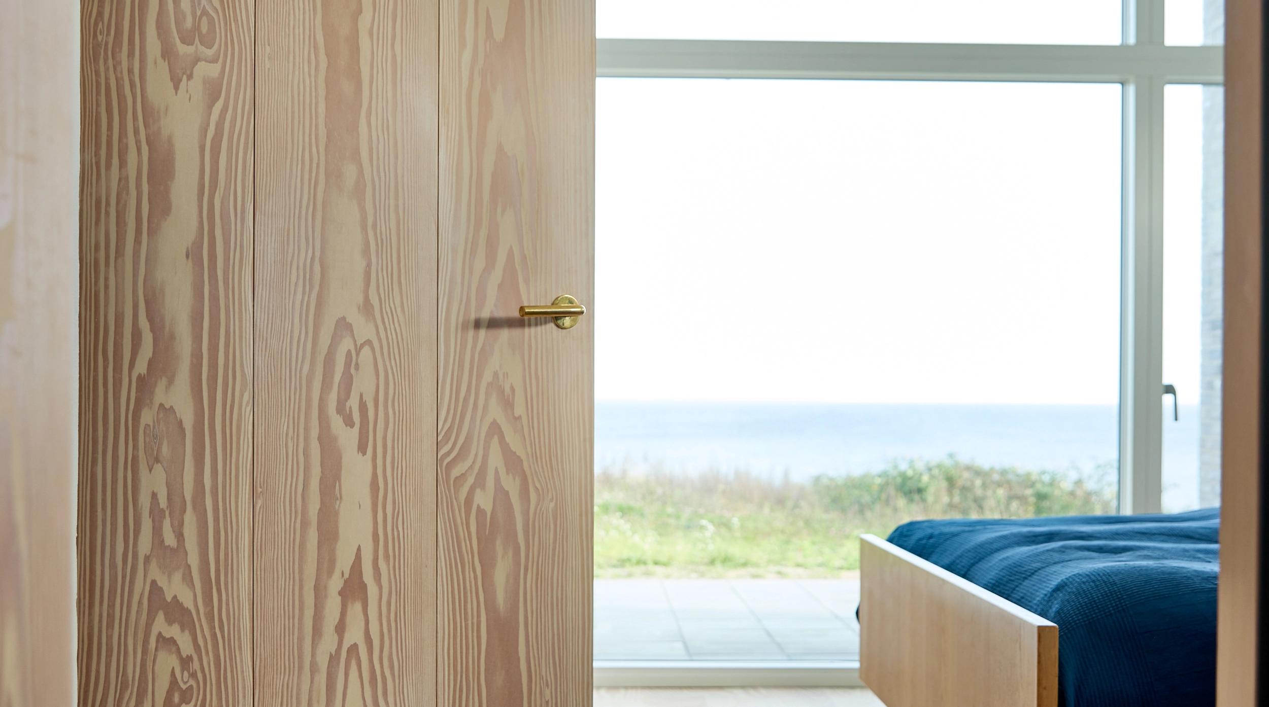 De indvendige døre er fremstillet i Dinesen Douglas, der med deres lyse og naturlige æstetik harmonerer smukt med det omkringliggende strandmiljø.