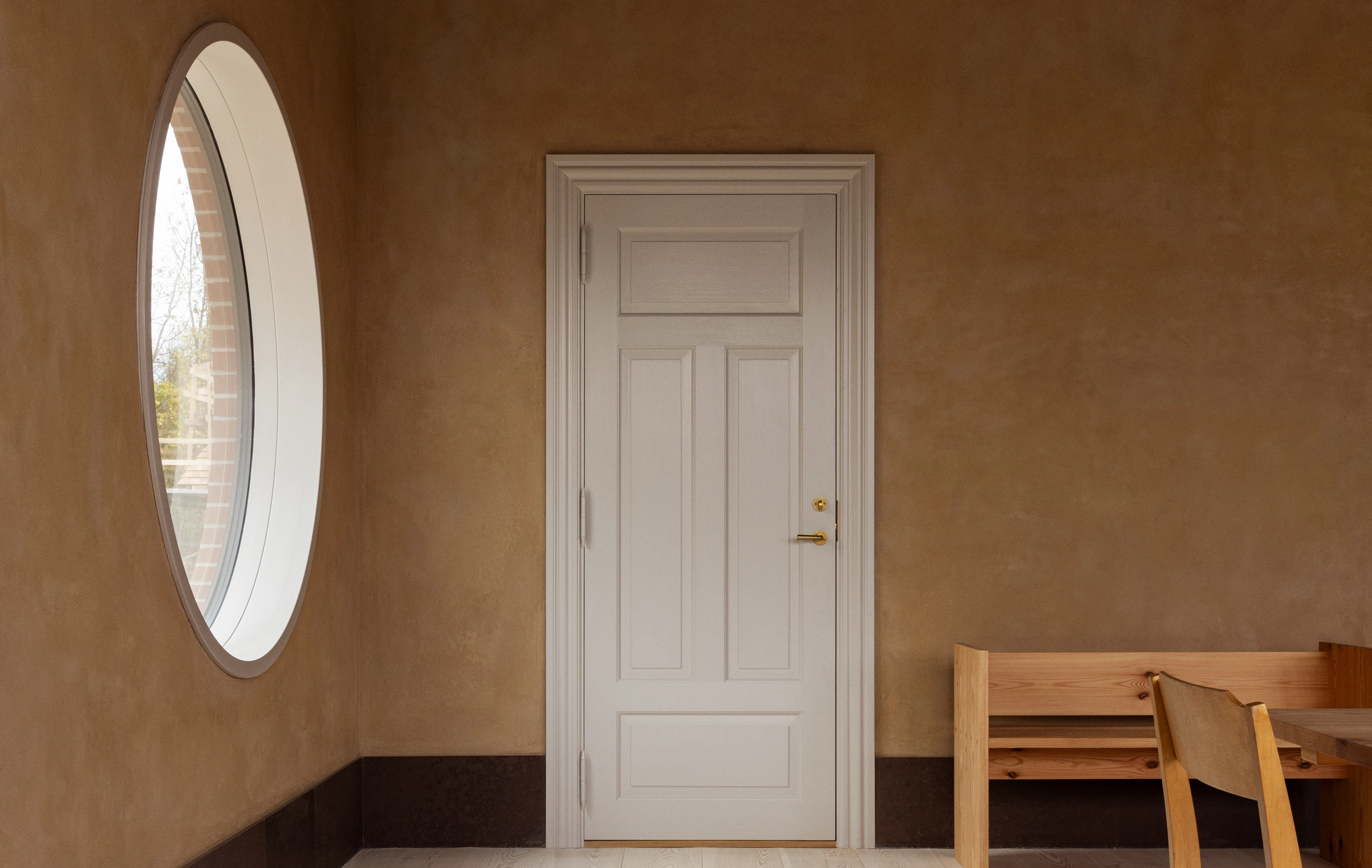 “Det har været vigtigt for os, at de nye branddøre ikke brød med den oprindelige ånd i huset. Vahles tilgang – at tænke dørens funktion og æstetik som én sammenhængende helhed – har været en stor styrke i projektet,”