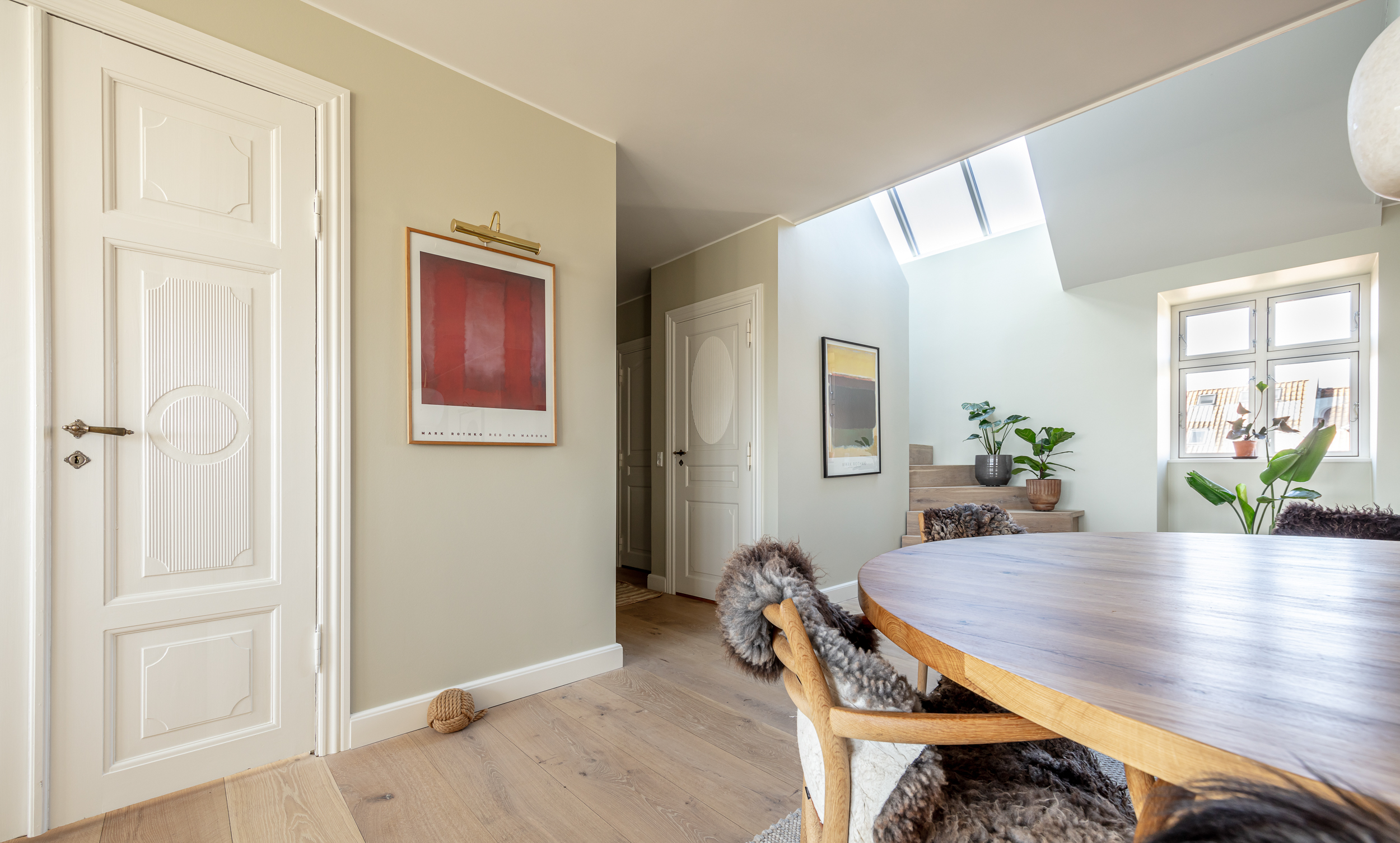 Penthouse lejlighed i to plan med fyldningsdøre som de originale