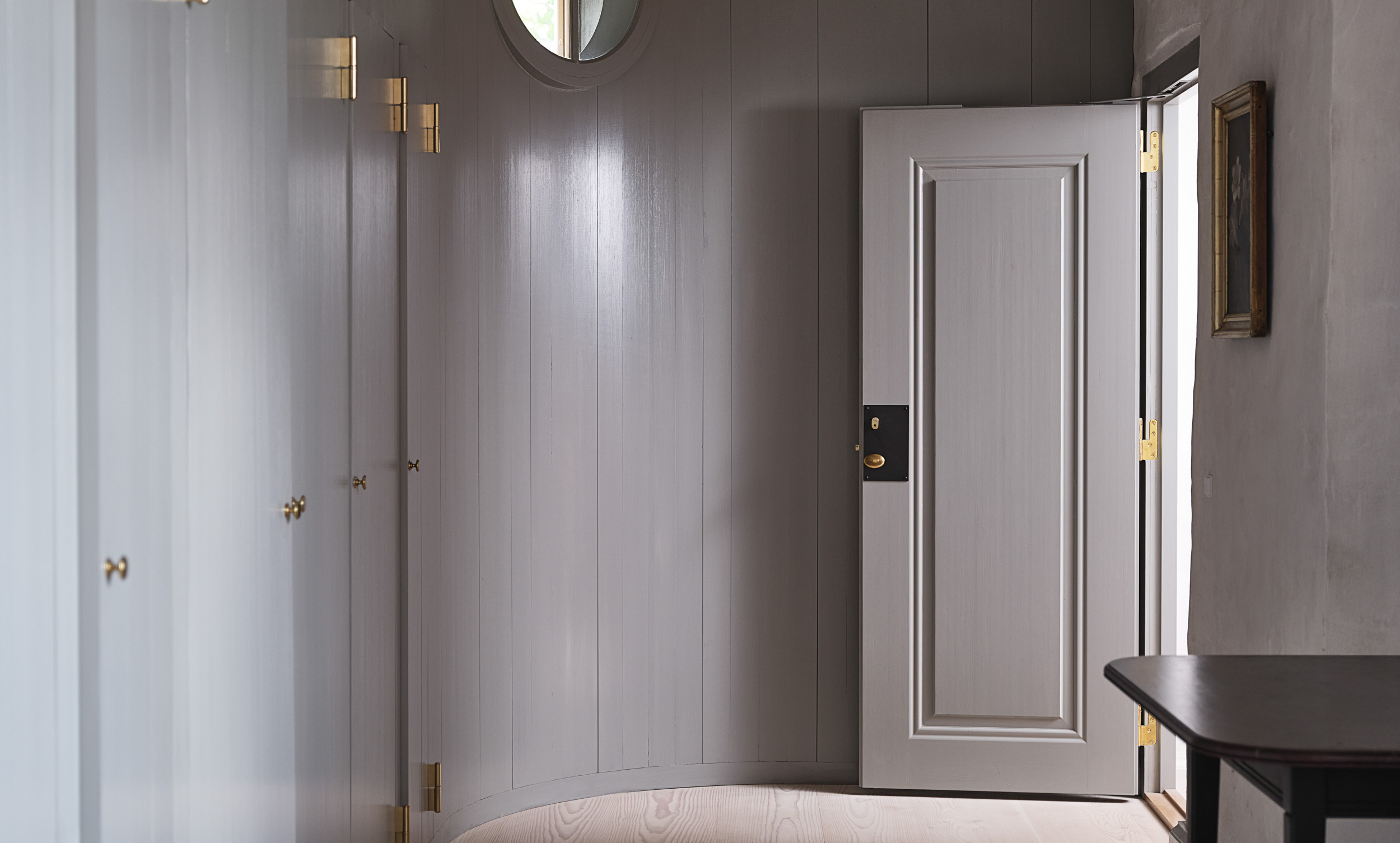 hvor de enkle fyldningsdøre skaber en markant, men rolig stil.